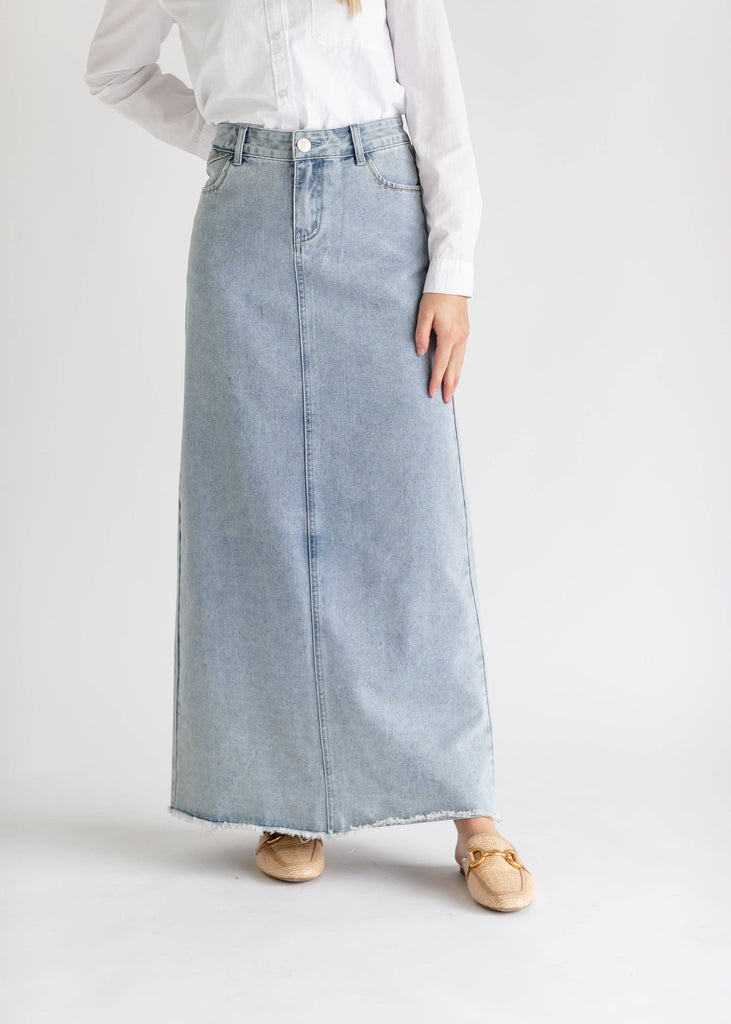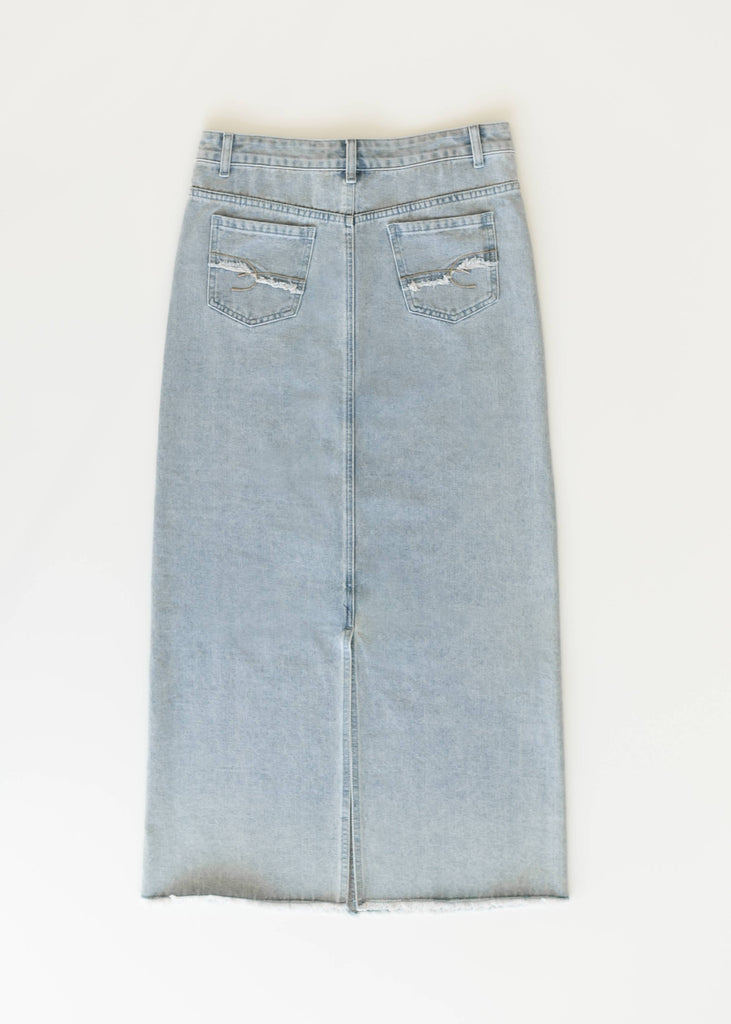 Elisha Light Wash Long Denim Skirt