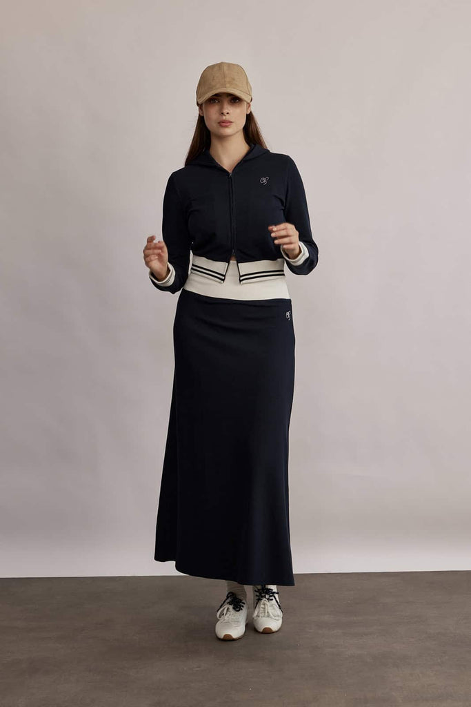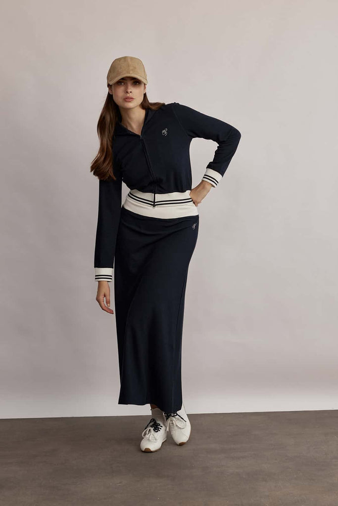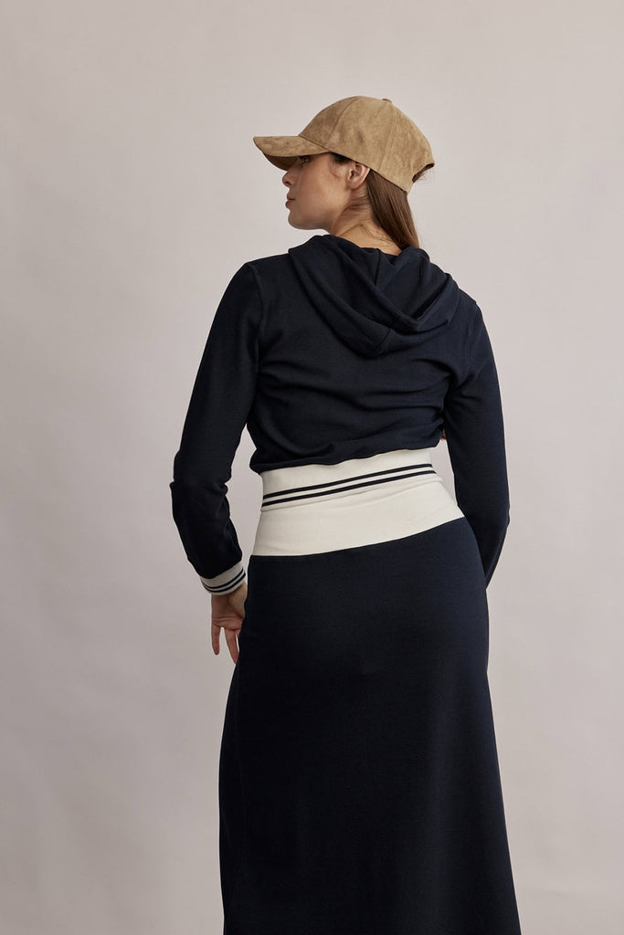 This ribbed skirt pairs perfect with the matching hoodie. The fold over top makes it adjustable length for your body type. Elevated basics for the win!