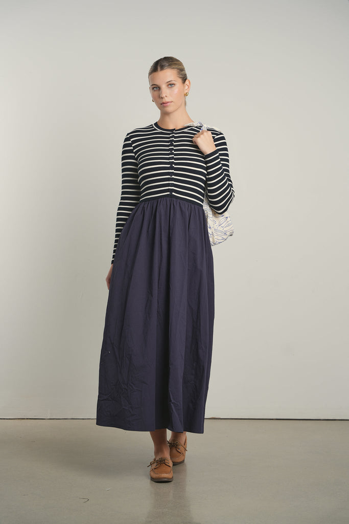 POINT MIXED POPLIN DRESS