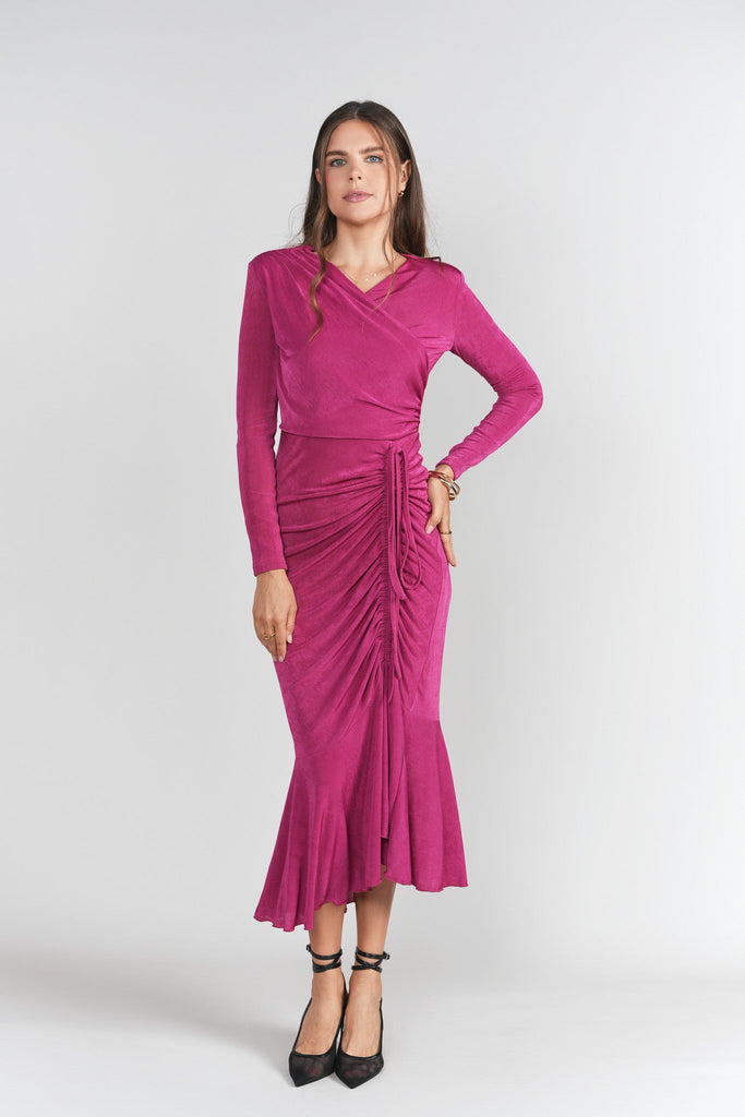 The Valerie Midi Dress in Fuchsia is your easy go-to for days you want comfort with a pop of color. With its flattering midi length, soft fabric, and modest design, it’s a dress you’ll reach for again and again—whether for everyday wear or a special moment.
