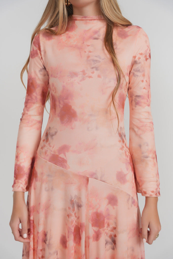 The Venice Dress is crafted from soft printed mesh with a fluid, second-skin drape. Designed with a slim, long-sleeve bodice that gently contours the body, it features a clean neckline and subtle seam detailing that elongates the silhouette. The skirt falls straight with natural movement, skimming the body without clinging. Lightweight and softly sheer in feel, the mesh brings an understated sensuality while remaining refined and wearable.