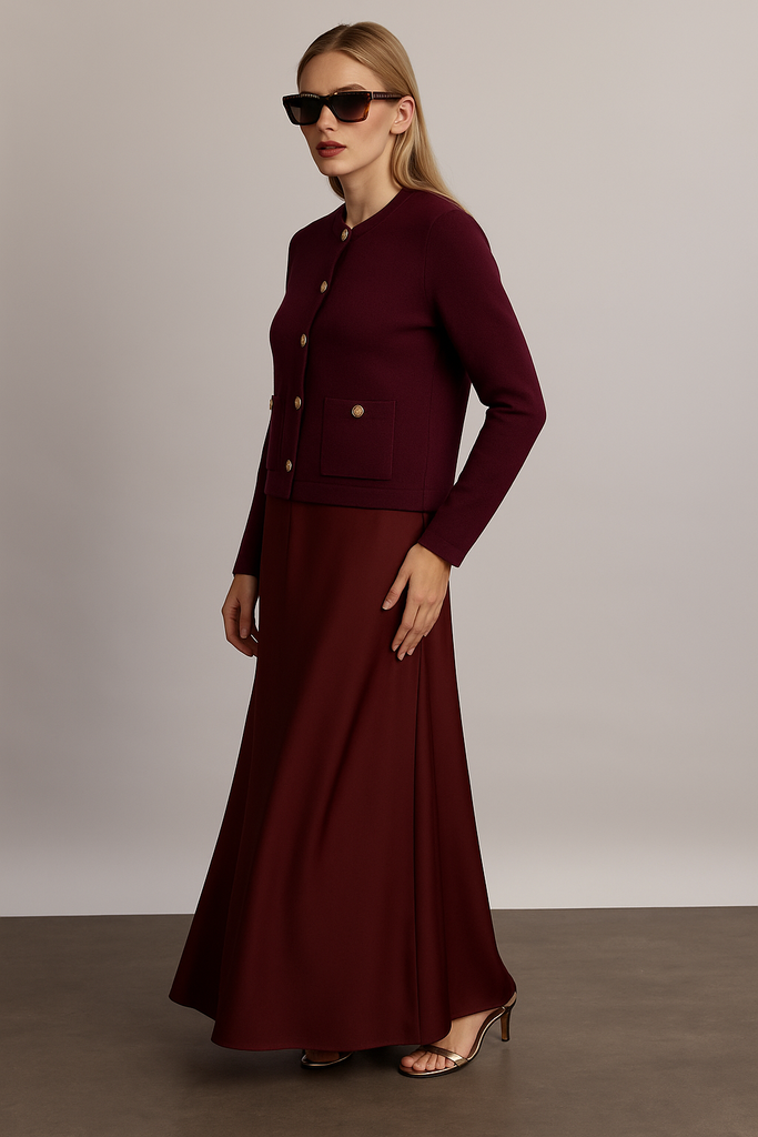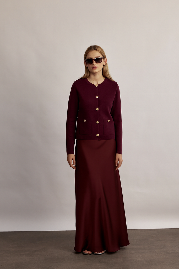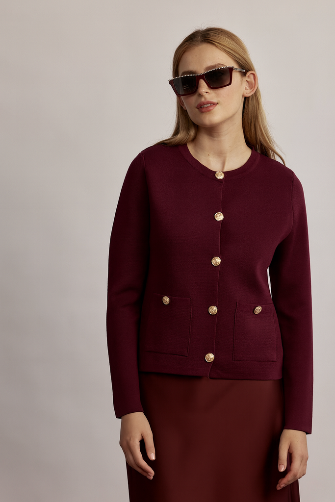 KNITTED CARDIGAN WITH BUTTONS – Bordeaux