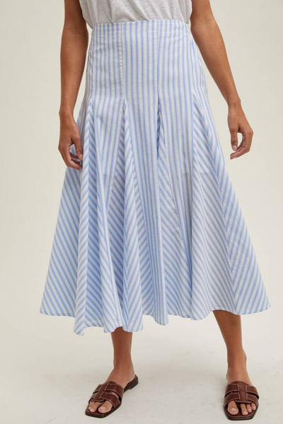 STRIPED FLARED MIDI SKIRT