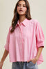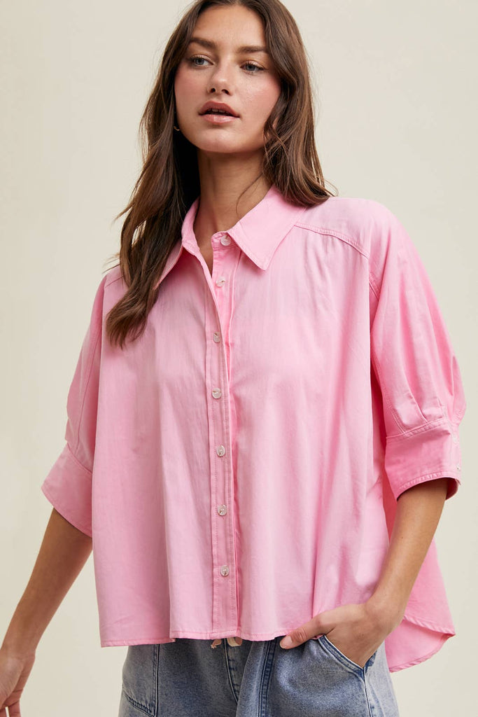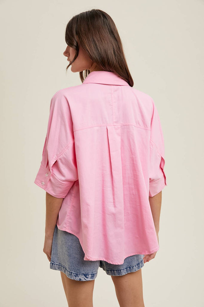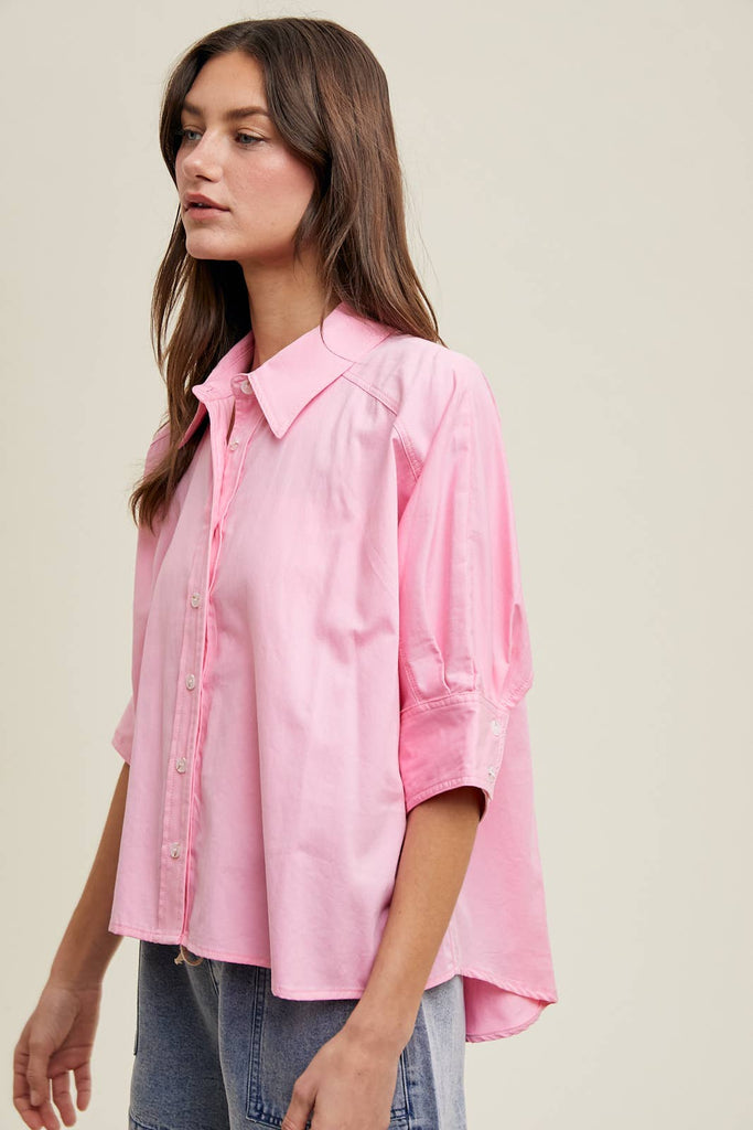 Slightly hi-low button up shirt. 3/4 sleeve length. 100% COTTON