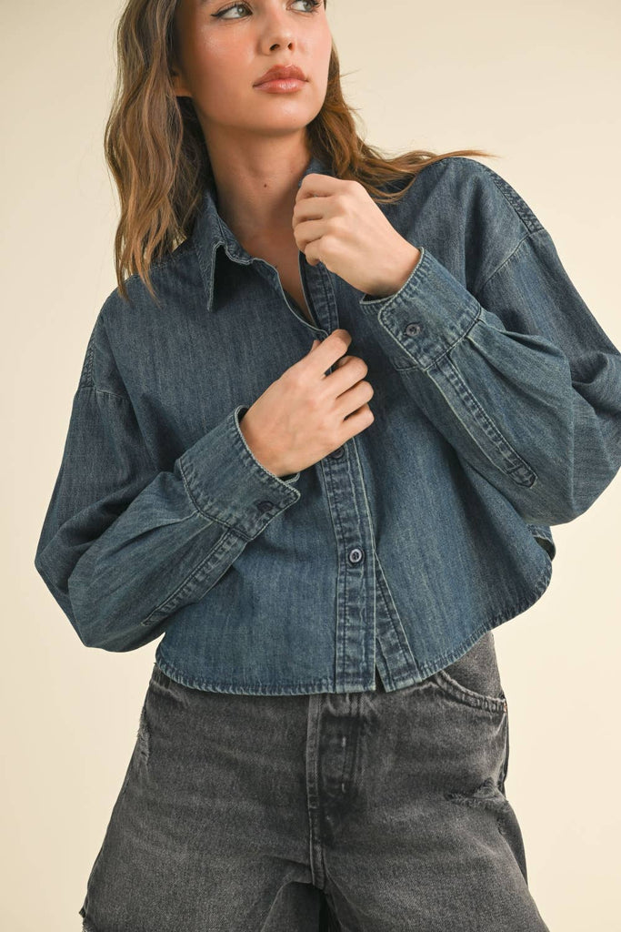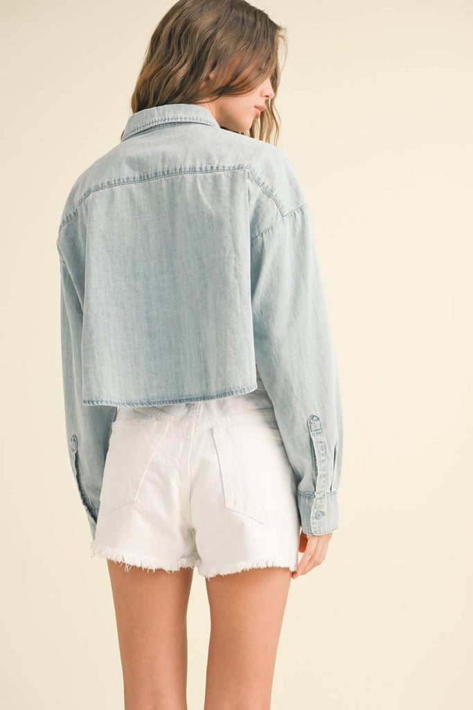 BUTTON DOWN SHORT BODY DENIM SHIRTS.