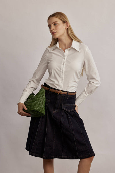Denim Pleated Skirt โ Dark