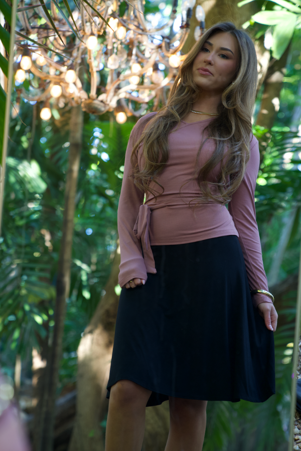 Elevate your wardrobe with our Faux Wrap Tee, a comfortable and stylish addition to any closet. With its faux wrap design and 5 versatile colors, this must-have basic is perfect for any occasion.
