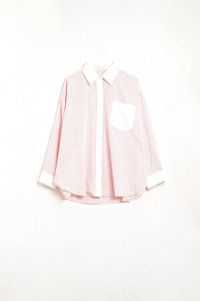Introducing this delightful pink striped shirt that combines style and comfort effortlessly! Designed with a classic polo collar and a convenient pocket this shirt is perfect for both casual outings and semi-formal events. The crisp white collar provides a lovely contrast adding a touch of refined elegance to your overall appearance. Made from high-quality poplin fabric this shirt not only feels soft against your skin but also ensures breathability making it an ideal choice for all-day wear. The carefully designed eye-catching stripes bring a contemporary vibe making it easy to pair with various bottoms from chinos to jeans.Whether you’re heading to a brunch with friends or a casual office meeting this charming shirt will surely elevate your style and keep you feeling comfortable.
