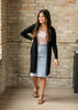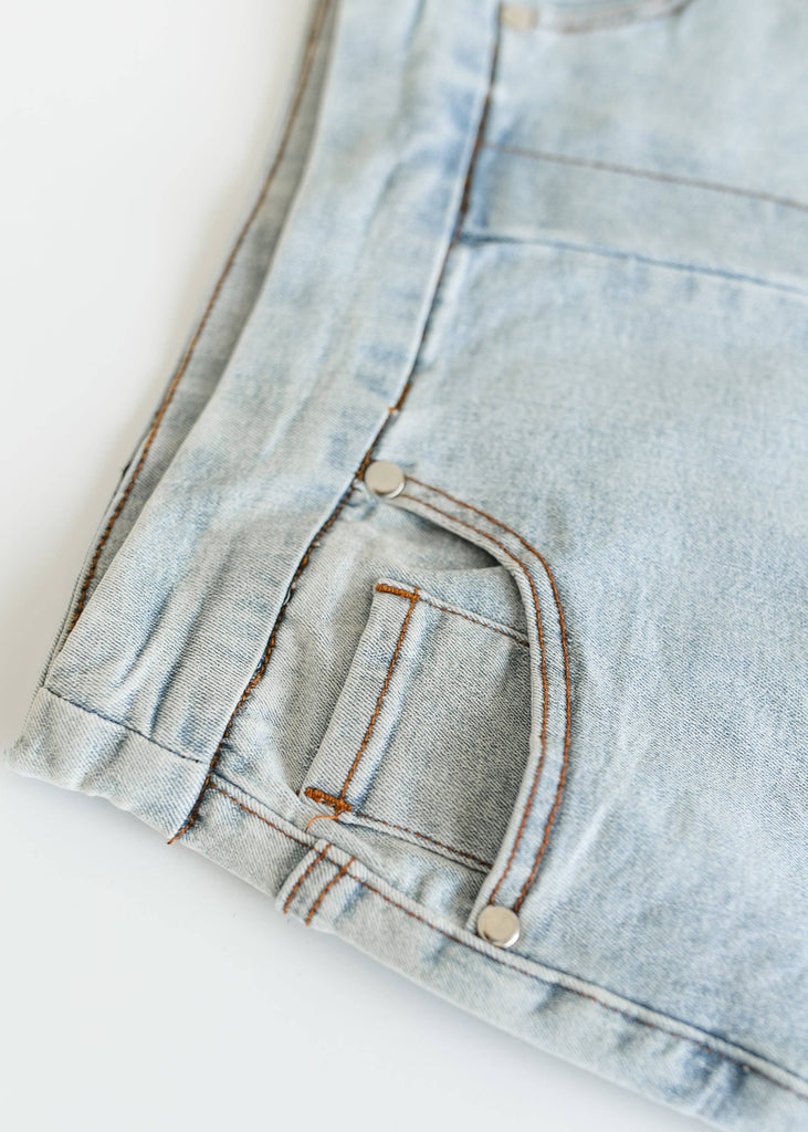 The Sandra Denim Skirt a chic short/midi skirt that is sure to become your new favorite! Crafted from light wash stretchy denim, this skirt brings a fun, modern twist to the classic denim midi style. Designed with a comfortable stretch waistband, it offers a flattering fit with no added bulk, making it the perfect choice for all-day wear. Slip it on effortlessly and enjoy the freedom of movement with its thoughtfully placed small back slit, ensuring you can walk with ease and confidence. The functional front and back pockets not only add a touch of practicality but also enhance the timeless, laid-back vibe of this modest midi skirt.