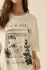 A garment washed graphic t-shirt with the following features: