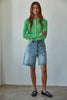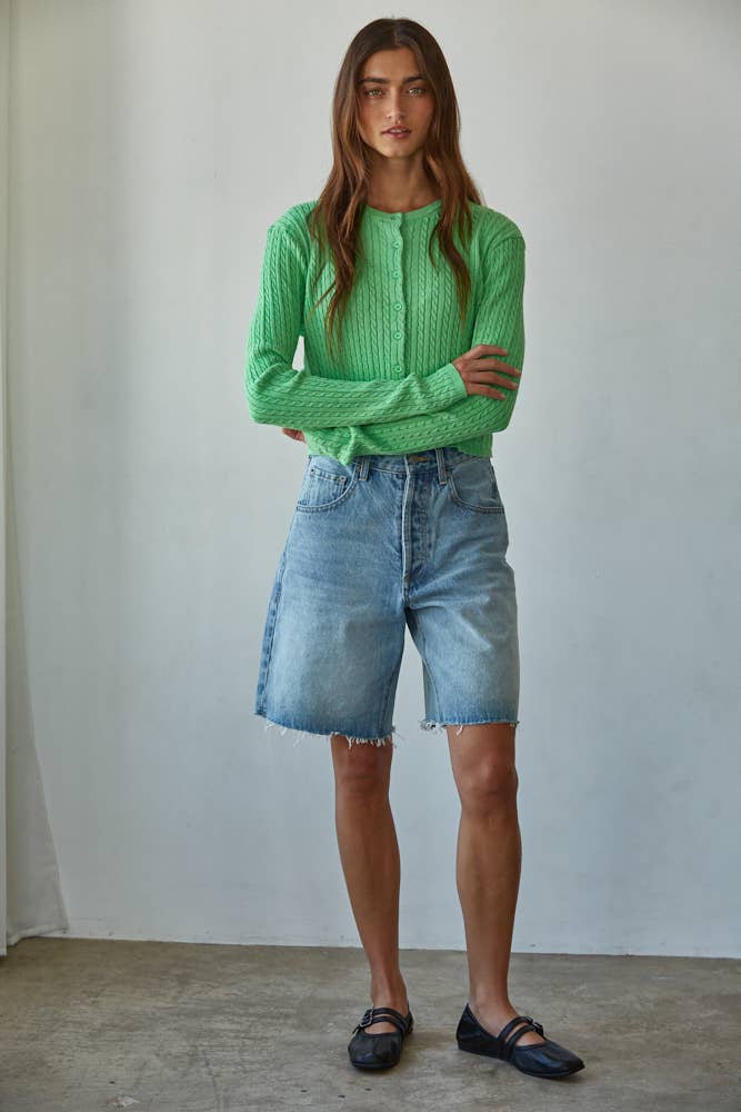 Knit Cable Sweater Cotton Crew Neck Long Sleeve Button Down Cardigan Top. Green color.