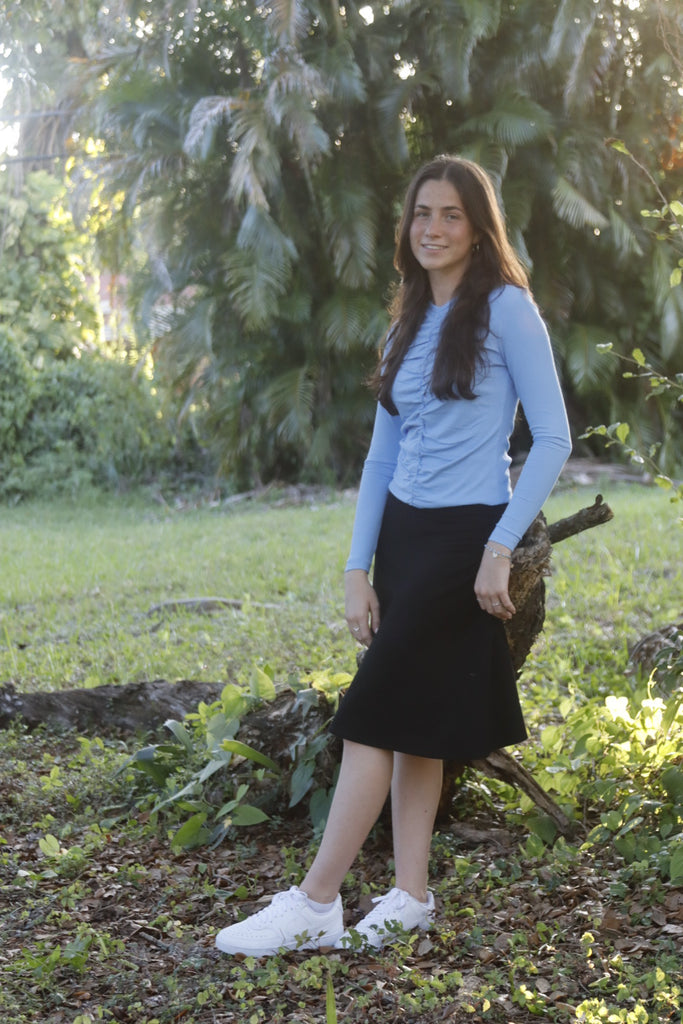 Easy to wash and care for, it resists fading wear after wear—so it always looks fresh. Simple, functional, and flattering, it’s the kind of skirt you’ll find yourself living in.